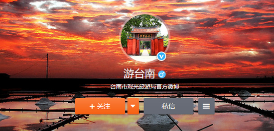 岛内各县市开设微博账号推广观光,像台南、高雄市府的官方账号早在民进党籍市长执政时便开设。截图来自微博