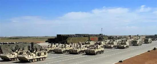 ▲资料图片:2017年7月30日,庆祝中国人民解放军建军90周年阅兵在位于内蒙古的朱日和训练基地举行。这是自行火炮方队。(新华社记者 查春明 摄)