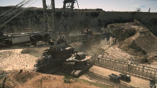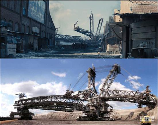 为描述《饥饿游戏》世界观中负责煤矿开采的第12区样貌,制作方在背景中加上了Bagger 288的样子。