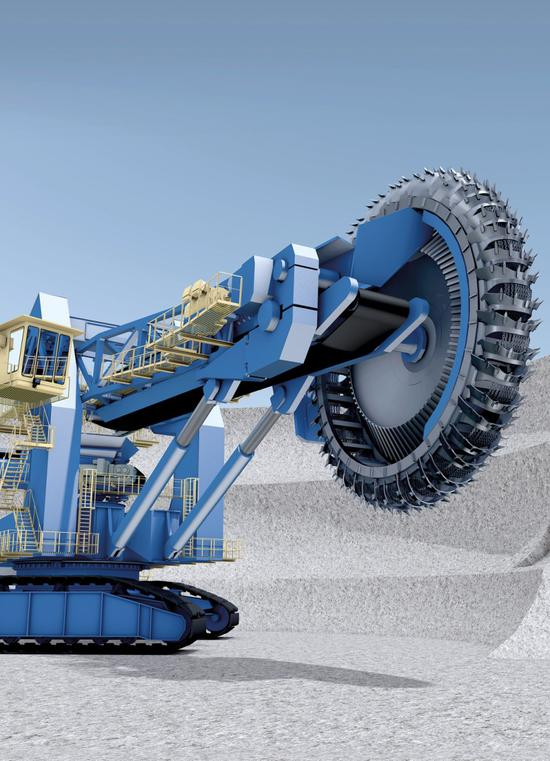 该设备挖掘量每小时可达7500Lm³,斗轮上的挂齿更加紧密,可以“吞下”质地更硬的材质,并“嚼”成直径不到20厘米的石块。