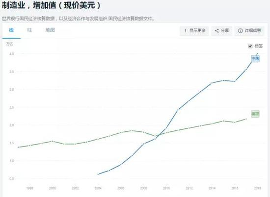 中国制造业在2010年超过美国(数据来自世界银行)