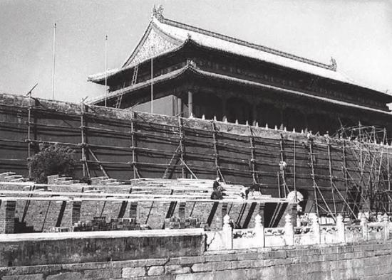 同样工作到深夜的,还有给毛泽东画像的周令钊。从9月初开始,他就每天来到天安门,带着自己的女徒弟陈若菊搭起脚手架爬上城楼,绘制毛主席画像,用了差不多一个月。