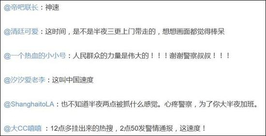 辽源网警当晚凌晨两点就抓获发帖人的神速,获得了网友们的一致好评。