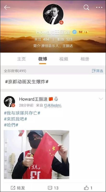 6日,身份认证为原创音乐人的微博网民@Howard王顥達 上传侮辱国旗的照片,被众多正义网友举报。