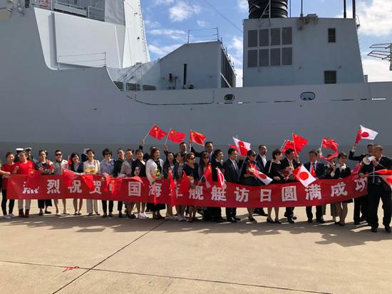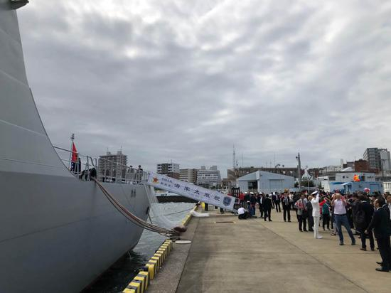 10月10日上午,中国海军“太原”号导弹驱逐舰抵达日本横须贺港,受到日本海上自卫队、旅日侨胞、中资机构、留学生、日本友好人士的热烈欢迎。这是中国海军舰艇时隔10年再次访日,也是首次赴日参加海上阅舰式。(来源:人民日报客户端 刘军国)