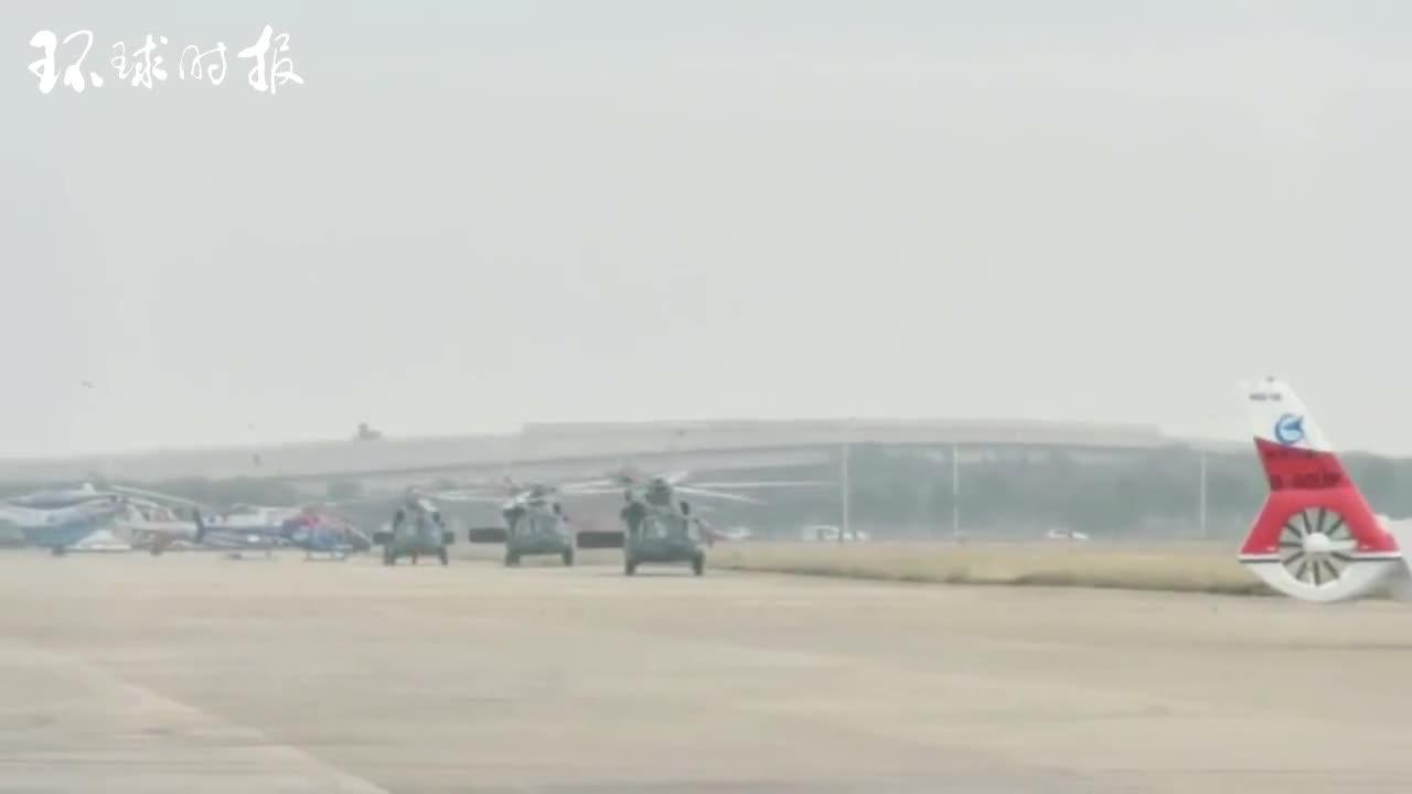 完成飞行表演后“风雷”表演队直升机着陆