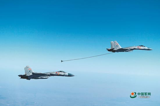 我军歼15最新演练画面曝光 第一视角看空中加油(图)