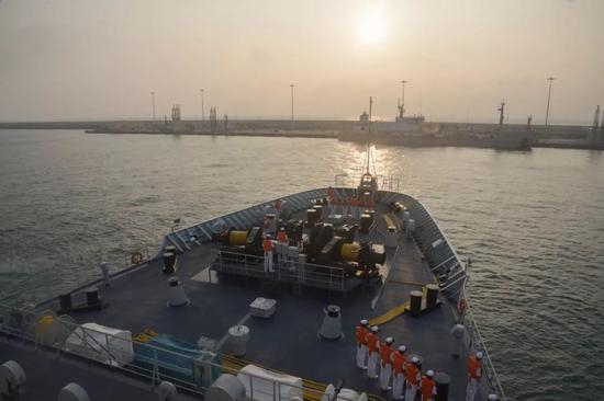 △第33批护航编队可可西里湖舰靠泊阿曼萨拉拉港。
