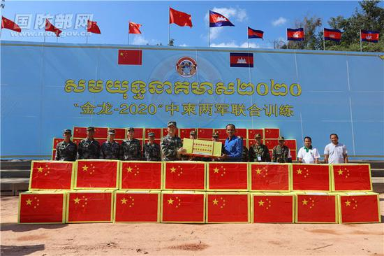 任国强:3月2日至4月10日,中柬双方在柬埔寨举行“金龙-2020”联合训练。中方派出265名官兵,以及直升机、火炮、装甲车辆、轻武器等装备参训。此次联训以“联合打击恐怖主义势力”为课题,区分混编同训和反恐综合演练两个阶段实施。第一阶段,主要围绕轻武器使用、徒手格斗、爆炸物搜排、步战车登车协同、机降等课目展开交流;第二阶段,综合演练侦察渗透、火力突击、区分清剿等内容。联训期间,中方向柬方提供了1.5万余件包括文体和医疗用品在内的人道主义援助物资。“金龙”系列联训系两军机制化务实合作项目,有助于双方增进了解与互信,提高共同应对国际和地区安全威胁能力。