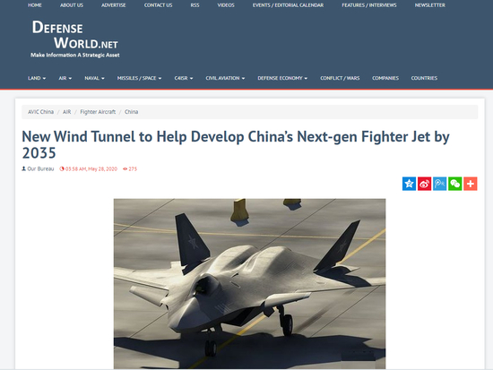 美媒:中国开始用风洞测试新战机 比歼20歼31都先进