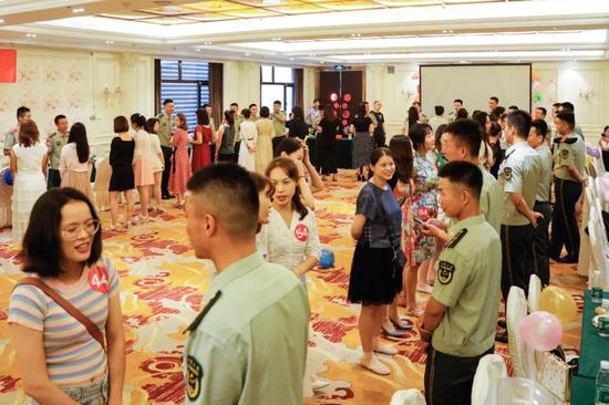2020年8月25日,浪漫七夕。北京市朝阳区“相约鹊桥 爱在军营”军地单身联谊会现场热闹非凡,欢声笑语不断。