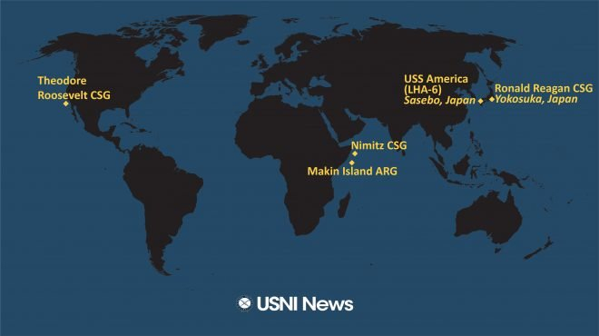 美国照例没有航母在东北亚