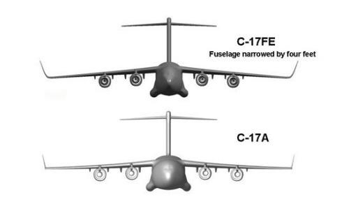 图17:波音推出的缩窄货舱版C-17FE,机身和机翼重新设计,并更换发动机
