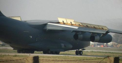 在其它方面,C-17在后机身下方设计有小巧的腹鳍,可以改善机尾的紊流,减少机尾阻力,这个腹鳍可以在巡航状态下减少机后阻力约3%,而运-20和伊尔-76都没有这样的设计;C-17在每个发动机短舱两侧还分别安装有小翼,这一对儿小翼其实是涡流发生器,可以产生机翼的前缘涡流,能延缓机翼上气流的分离,提升机翼的升力,可以使最大升力系数提高6%,而阻力不增加,运-20和伊尔-76同样没有这样的设计。总的说起来,在气动设计上,C-17是最精致的,考虑了很多细小的细节,应用了大量的尖端技术,这也正是美国全球最强航空工业实力的真实体现。而俄罗斯的伊尔-76是最粗糙的,而且实在太老了,运-20则还在逐步成熟阶段,像翼梢小翼或是机尾的腹鳍这些如果确实需要,也是可以后期再加装的,只能说不等运-20真正以完全之姿量产那一天,还是无法一窥它的全貌。