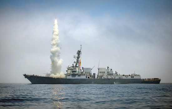 美军舰试射“战斧”导弹的画面。