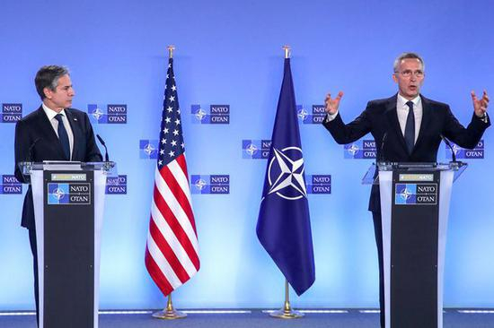 路透社援引了布林肯在会见北约秘书长斯托尔滕贝格(Jens Stoltenberg)时的发言。美国国务卿称:“我来这里是为了表达美国(对北约)的坚定承诺,美国希望重建我们的伙伴关系,首先是与我们的北约盟国,我们希望重振北约联盟。”