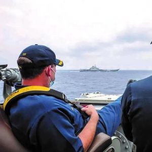 美舰官兵近距离监视中国航母辽宁舰。