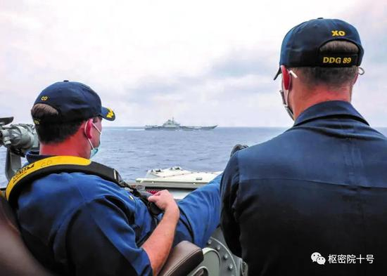 日前一张美海军“马斯廷”号驱逐舰官兵“翘着脚”盯拍中国航母辽宁舰的照片在互联网上刷屏。