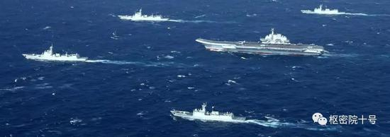 反过来看一下,中国航母编队倒是严格按照美国航母打击群的标准组建的呢。1艘航母、1艘相当于巡洋舰的055型大驱、两艘防空驱逐舰、1艘反潜护卫舰和1艘补给舰。分明比美军还要美军嘛。