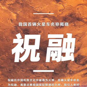 据国家航天局消息:经全球征名、专家评审、网络投票等层层遴选,我国首辆火星车最终命名为“祝融号”。祝融在中国传统文化中被尊为最早的火神,象征着我们的祖先用火照耀大地,带来光明。首辆火星车命名为“祝融”,寓意点燃我国星际探测的火种,指引人类对浩瀚星空、宇宙未知的接续探索和自我超越。