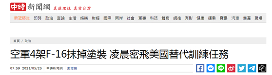 中时新闻网则称,据透露,台湾在亚利桑那州卢克基地进行人员训练的21中队F-16战机,除了第一批外,后续也将陆续分批飞回台湾,以进行性能提升。报道声称,25日凌晨由台湾飞行员驾机飞返美国,也是台湾“空军”飞行员首度从台湾飞至美国,这是台美军事合作领域的一项新突破。