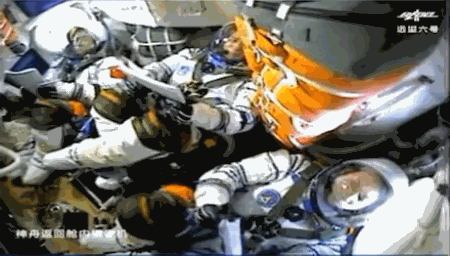 舱内画面显示,聂海胜与刘伯明两位“老司机”的情绪冷静淡定,而汤洪波则看起来略显激动。