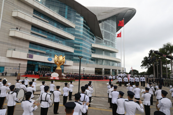 港府举行七一升旗仪式 护旗方队首以中式步操进场