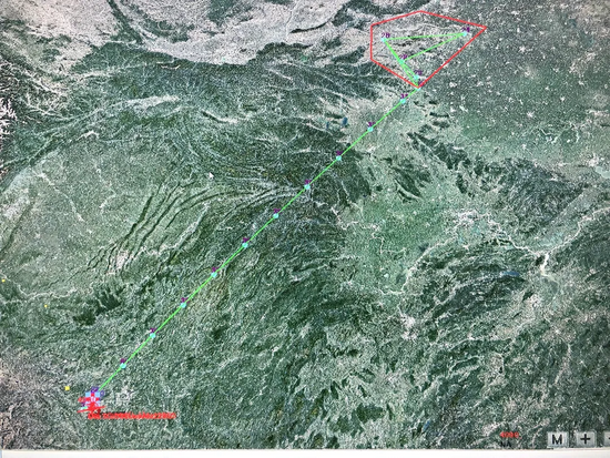 在穿越贵州省、重庆市、湖北省、河南省(三省一市),经过4小时的飞行,飞行近1200公里后,于18时21分进入米河镇通信中断区。利用“翼龙”-2H应急救灾型无人机空中应急通信平台搭载的移动公网基站,实现了约50平方公里范围长时稳定的连续移动信号覆盖。