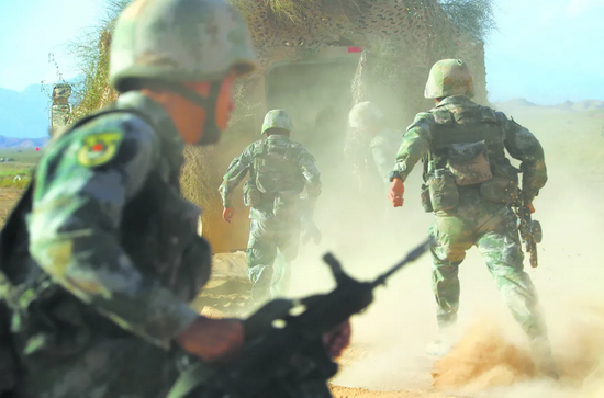 铁流滚滚展雄风,陆空协同战犹酣。联合任务部队采取陆航冲击、装甲突击、机降破袭、空中突击等行动,对“敌”实施立体多路攻击,彻底消灭残存的“恐怖分子”。