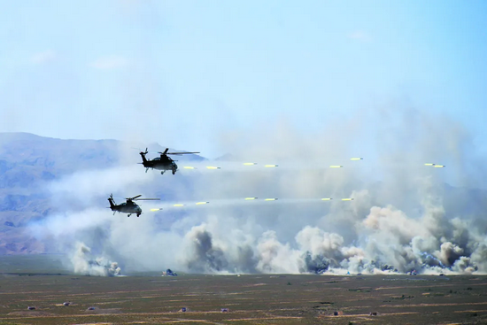 武装直升机打击“敌”目标。