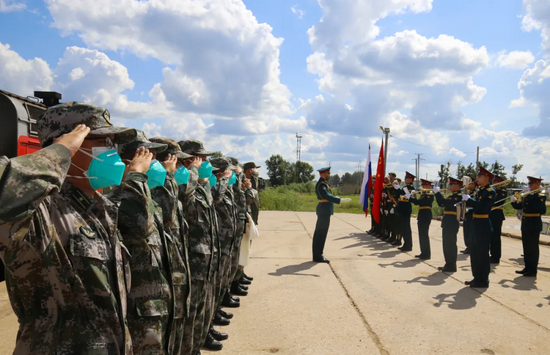 抵达莫斯科后按俄方防疫要求,在进行核酸检测并隔离观察2天后,于8月12号抵达俄罗斯阿拉比诺军营,俄方举行了隆重的欢迎仪式。