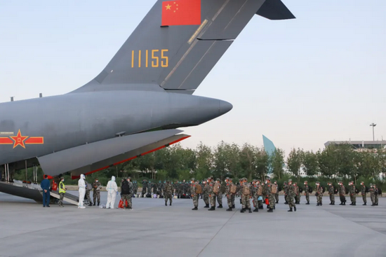此次“坦克两项”参赛队区分铁路运输和航空运输两种方式进入俄罗斯境内。搭乘中国空军运20飞抵莫斯科的“坦克两项”参赛队21人,于8月9日从乌鲁木齐地窝堡机场出发。