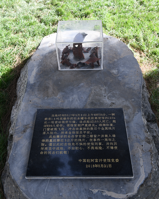 图为使馆内的特大恐袭纪念碑