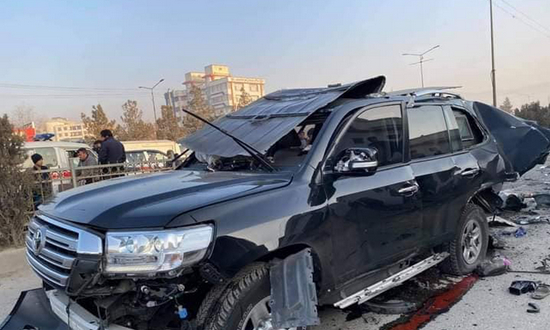 图为使馆外被炸毁的防弹车