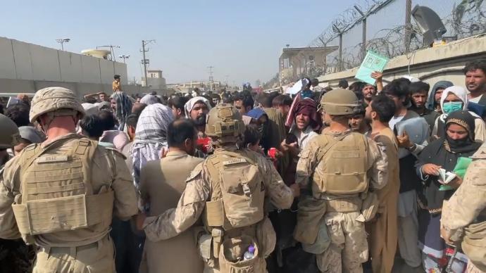 实拍喀布尔机场外爆炸前画面:人员密集美军无瑕安检