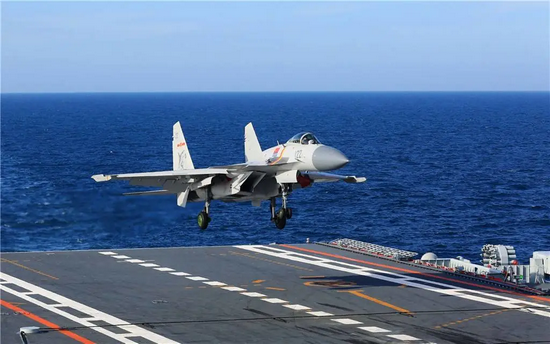 资料图:歼-15在山东舰上起降