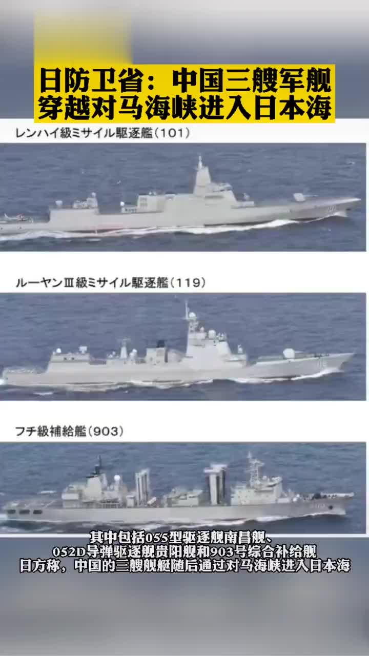 日本防卫省:中国三艘军舰穿越对马海峡进入日本海