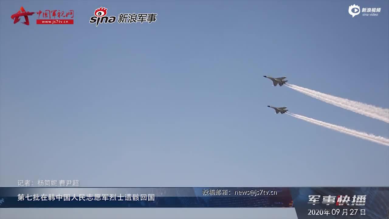 第七批在韩志愿军烈士遗骸回国 歼11B两度通场拉烟致敬