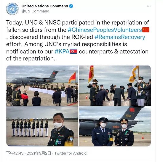另外,老刘还发现一个情况,在韩国出席仪式的除了韩方的官员之外,似乎还有美国军官。UN Command “联合国军”官方推特上出现了西方军人的身影,不过,推文中并没有对外国军官的身份进行详细介绍。