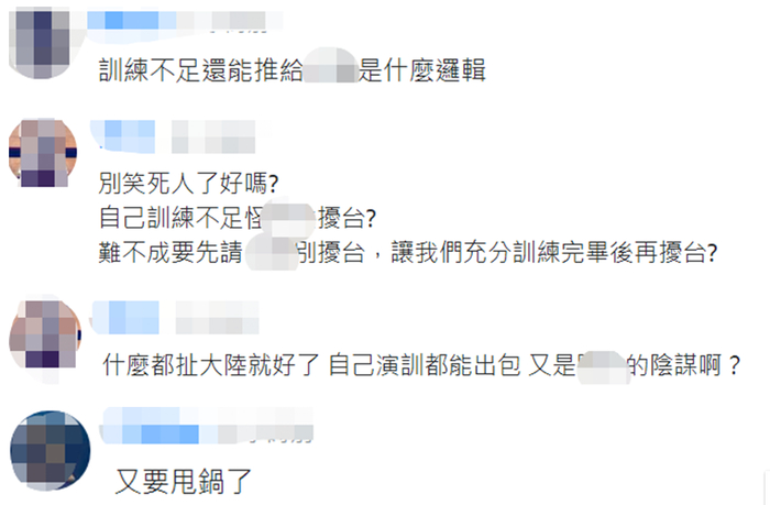 对于张延廷此次的一番说辞,有岛内网友说,将台军训练不足推给大陆,什么都扯上大陆没逻辑,“又要甩锅了”。↓