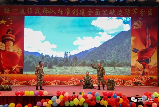 西藏军区某团春节联欢晚会现场,官兵们通过歌舞、相声、小品等多种艺术形式,综合演绎了官兵们在部队生活中发生的故事,表达了对军旅生涯的感受……