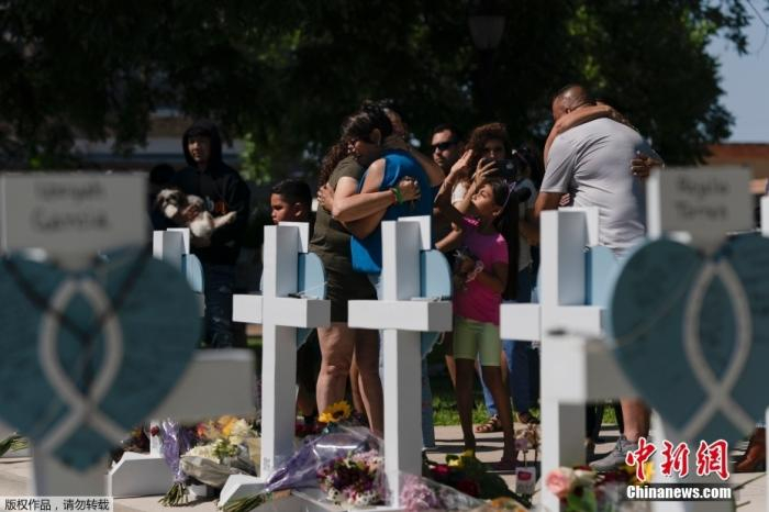 美国得克萨斯州尤瓦尔迪市民众悼念小学枪击案19名儿童遇害者。