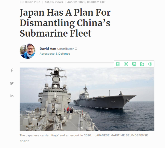 据美国《福布斯》杂志网站报道,日前,日本海上自卫队在日本南部的冲绳附近海域发现了一艘中国潜艇,并最终将其“驱离”该海域。日本官员称,潜艇渗透是中国在西太平洋海域实施领土扩张战略的关键一步。