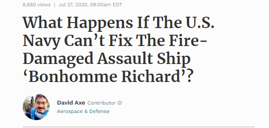 美军起火两栖攻击舰修不好怎么办 美媒又扯上了中国