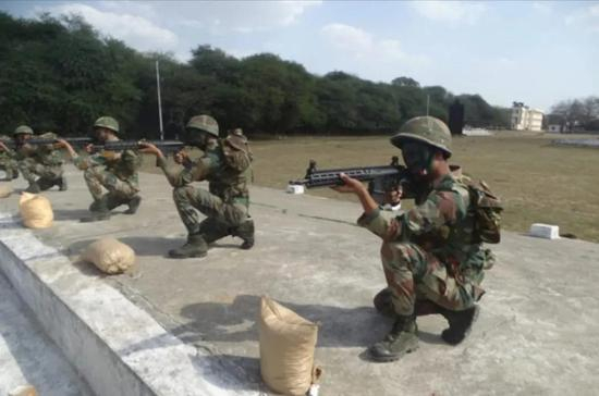 ▲印度士兵手中没有战术附件的基本款SIG716