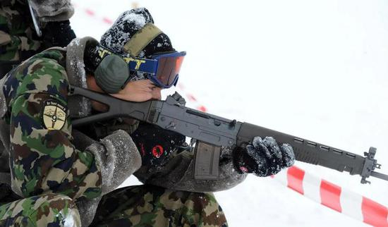 ▲使用SIG550参加“雪绒花”比赛(欧洲山地兵竞赛)的瑞士士兵