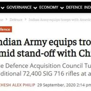 当然,从印度媒体关于中印边境争端的报道来看,现在拉达克地区的印军还有相当多自产“英萨斯”在役,SIG716占印军枪支装备比例目前还不高。