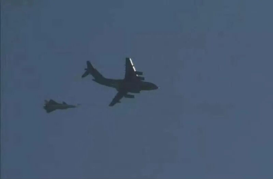 歼20战机疑似进行空中加油测试 加油机是运20(图)