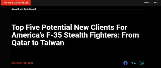 美媒:F35有5个潜在新买家 卖给台湾可能性越来越大