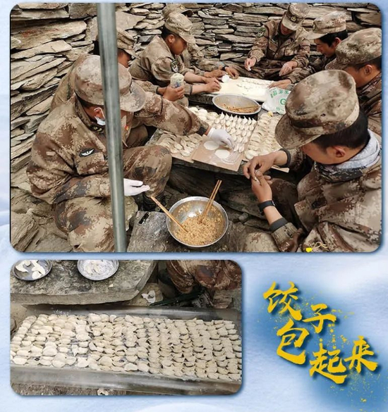 ▲解放军在一线掩体里包饺子吃图片来自西部战区